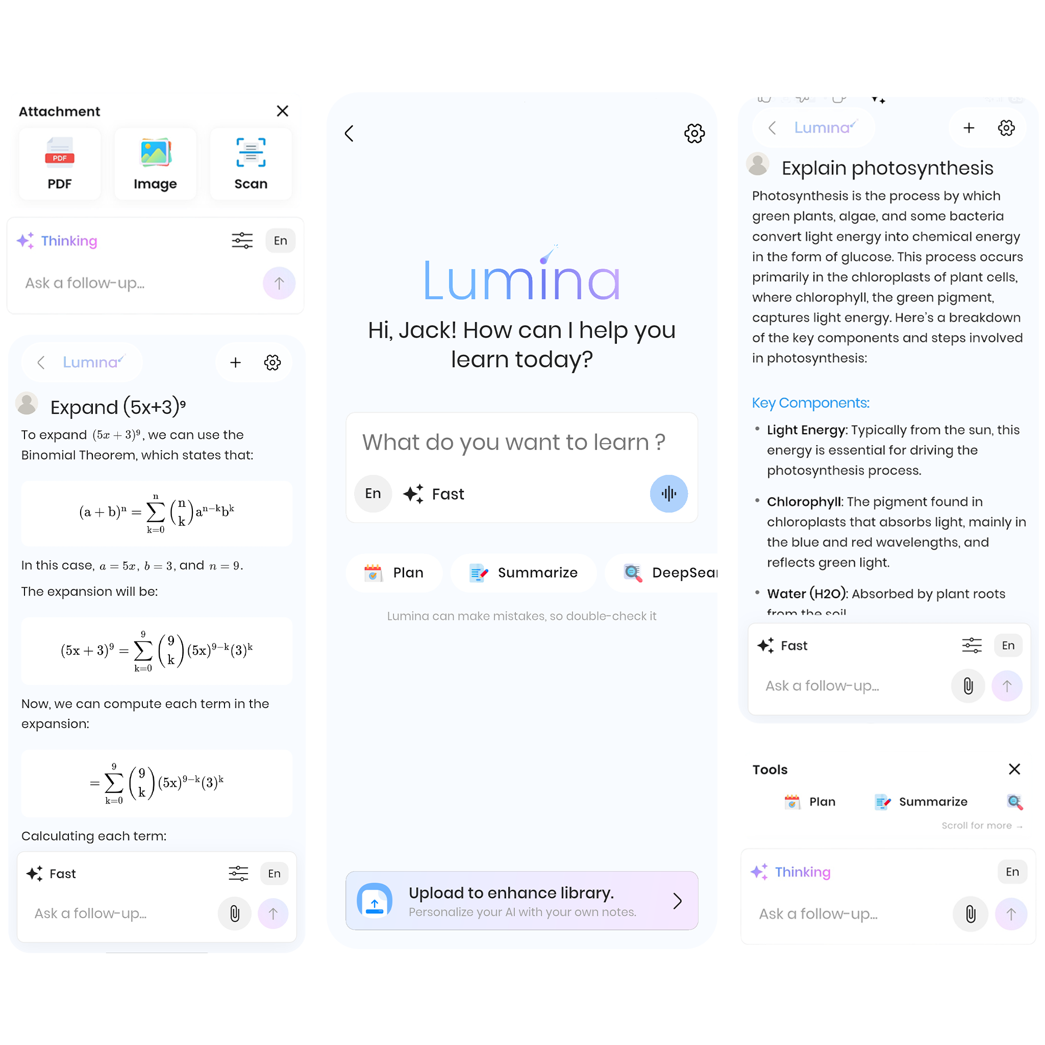 Confused about a concept? Just ask. Lumina scans your uploaded biology notes, math formulas, and history essays to give you an answer cited directly from your materials.